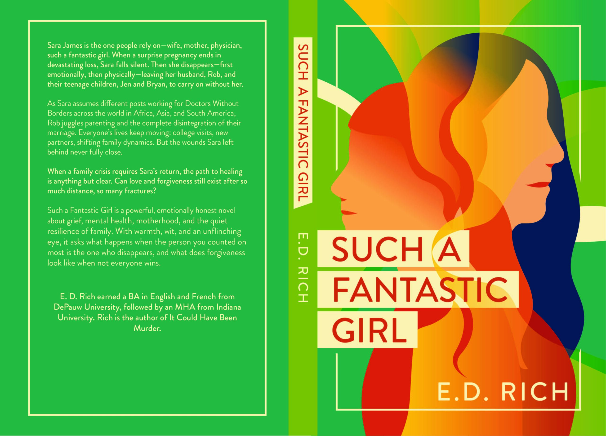 E.D. Rich earned a BA in English and French from DePauw University, followed by an MHA (Master’s in Health Administration) from Indiana University. An Indiana native, E.D. Rich is married, has one son and two dogs. Her newest release, “Such a Fantastic Girl, was published in September 2025. Her debut novel, “It Could Have Been Murder,” was published in November 2024. Ms. Rich is hard at work on several other exciting writing  projects. Ms. Rich is an avid knitter, and if you meet her in person, she will probably offer to knit you a hat.
